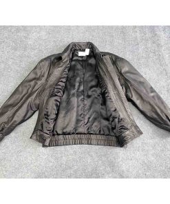Áo da nam ANDREW MARC Bomber chính hãng secondhand – Size M, màu đen, chất liệu da cừu mềm mại, lót acetate bóng bẩy, thiết kế cổ bẻ, khóa zip tiện lợi.