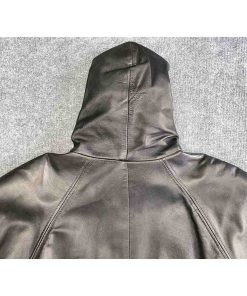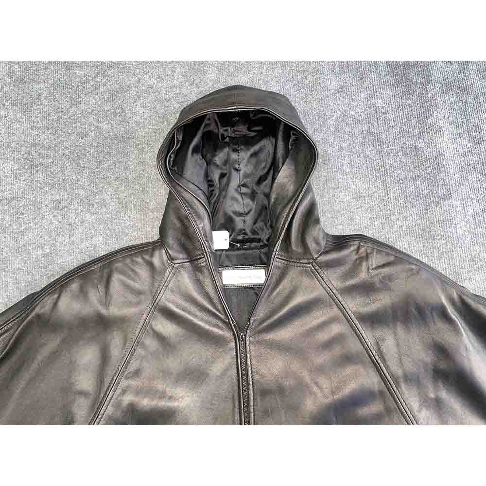Áo được làm từ da cừu trưởng thành, dày dặn và chắc chắn với các vân da tự nhiên, mang lại cảm giác mềm mại và độ bền cao. Lớp lót trong bằng vải polyester ít nhăn và dễ làm sạch, giúp tăng cường sự thoải mái khi mặc. Thiết kế relaxed fit với mũ trùm đầu và hai túi lớn ở hai bên eo không chỉ tiện dụng mà còn tăng thêm phần cá tính cho người mặc.