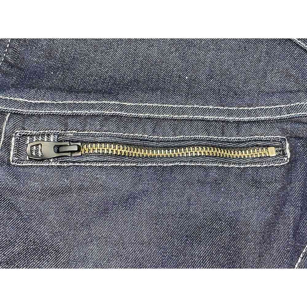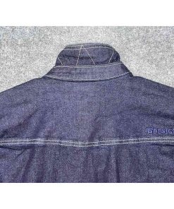 Áo khoác jean nam TS DESIGN Racer chính hãng new – Size S được thiết kế theo phong cách Racer Jacket cổ điển với cổ trụ cao, bo gấu và tay áo gọn gàng, tôn lên dáng người mặc. Chất liệu denim 98% cotton và 2% elastane giúp áo có độ co giãn nhẹ, mặc thoải mái cả ngày mà vẫn giữ form. Những đường cắt dọc – ngang tinh tế tạo điểm nhấn khỏe khoắn, cá tính. Khóa kéo và nút bấm bằng đồng thau cao cấp giúp áo bền bỉ theo thời gian, đồng thời tạo nét đặc trưng cổ điển cho phong cách.