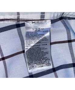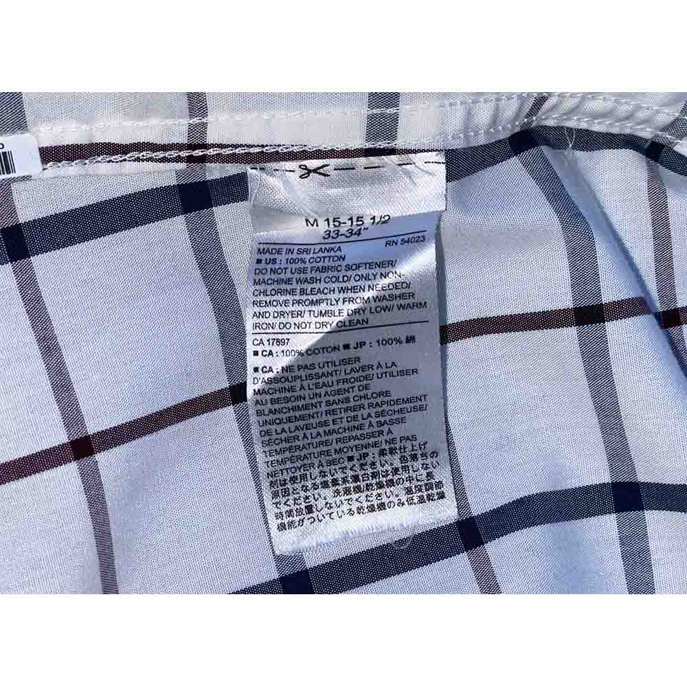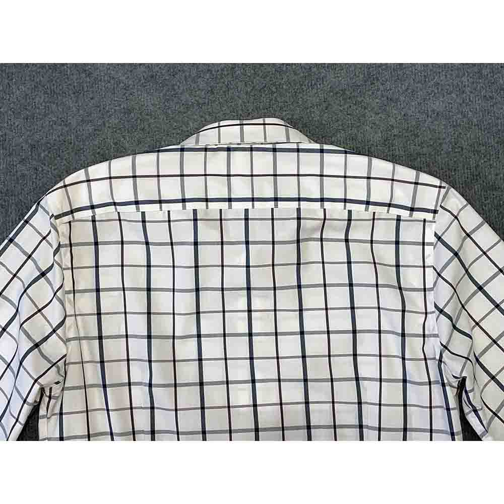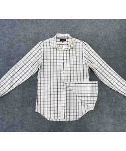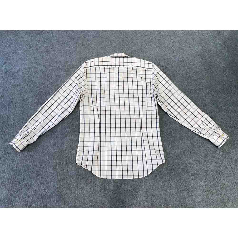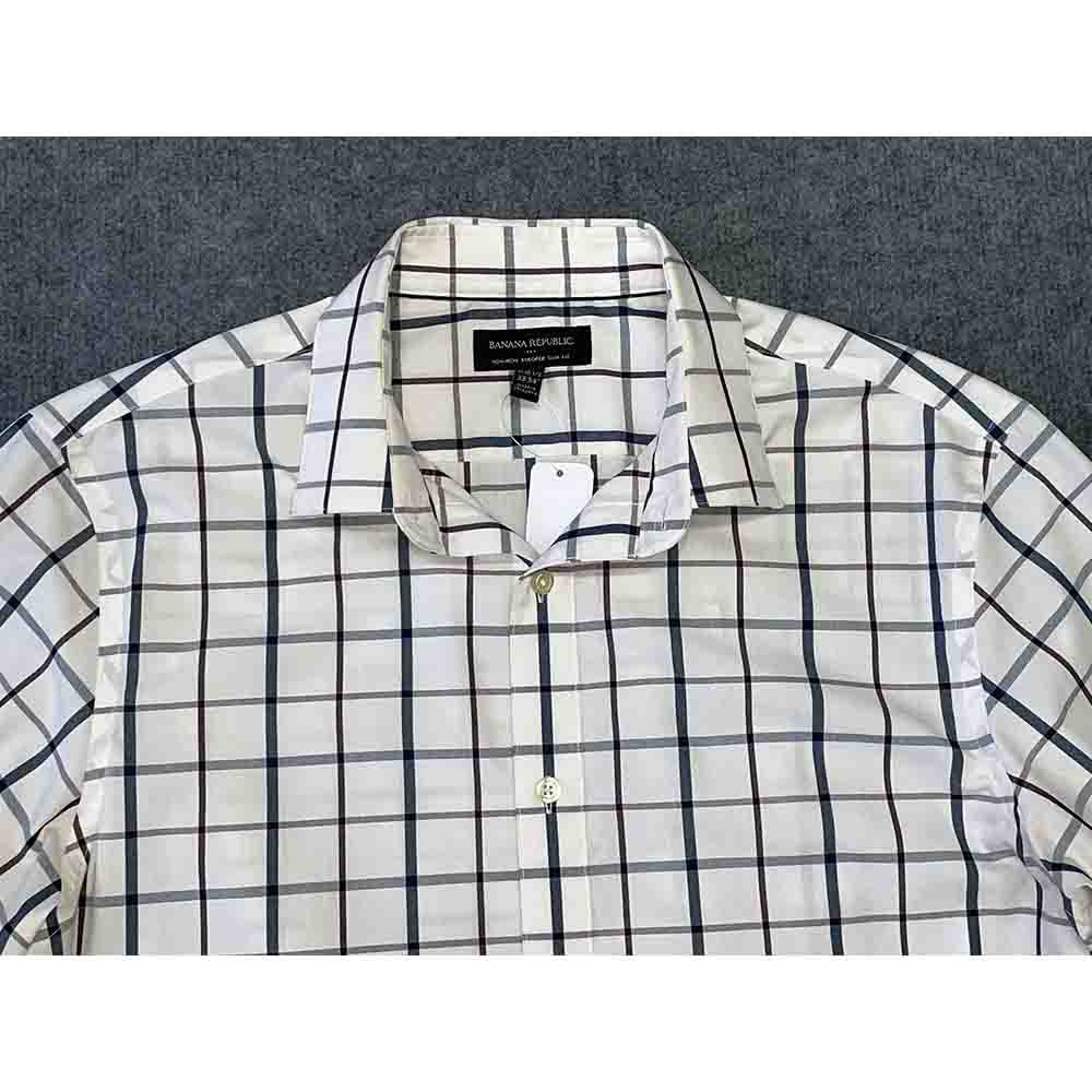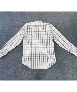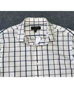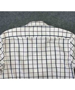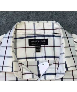 Áo có màu trắng kẻ caro tinh tế, không túi ngực, tạo nên vẻ ngoài gọn gàng và hiện đại. Đường may tinh xảo, chắc chắn, thể hiện sự chú trọng đến từng chi tiết của thương hiệu BANANA REPUBLIC.
