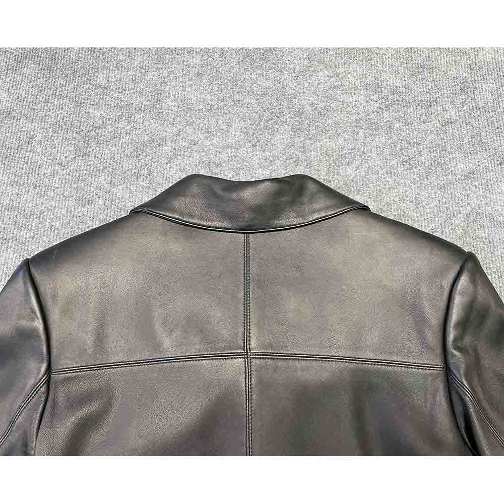 Áo được làm từ da cừu New Zealand cao cấp, mang lại cảm giác mềm mại, nhẹ nhàng và thoải mái khi mặc. Lớp lót trong bằng vải acetate bóng bẩy, ít nhăn và dễ làm sạch, giúp tăng độ bền và thẩm mỹ cho sản phẩm. Thiết kế unisex với dáng cổ điển, 4 hàng cúc cài và 2 túi ở eo, phù hợp với nhiều phong cách và dịp khác nhau.