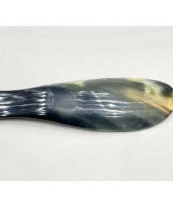 Cây xỏ giày sừng bò tự nhiên cao cấp được làm hoàn toàn thủ công từ sừng bò châu Phi – loại sừng nổi tiếng về độ bền, độ dẻo và vẻ đẹp độc đáo. Mỗi sản phẩm có một đường vân riêng biệt, không trùng lặp, thể hiện cá tính và gu thẩm mỹ của người sử dụng. Hình dáng uốn cong mềm mại, đầu đón gót được làm mỏng dần, dễ luồn vào giày mà không làm hư phần gót giày.