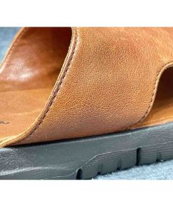 Quai và lót dép làm hoàn toàn từ da bò full grain – loại da cao cấp, vân tự nhiên nổi bật, bền bỉ, mềm mại và dẻo dai theo thời gian. Thiết kế dép dạng slip-on (dễ xỏ, dễ tháo), phù hợp di chuyển thoải mái suốt ngày dài.