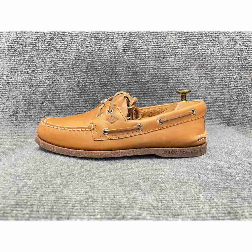 Giày boat Sperry 2 Eye chính hãng secondhand, size 41, màu nâu nhạt sang và dễ phối đồ. Thiết kế dáng boat kinh điển, đế cao su chống trượt với công nghệ Wave-Siping™, độ mới 85%, nhập khẩu từ Mỹ.