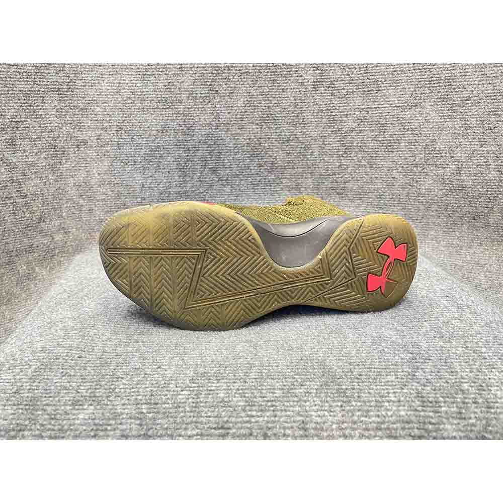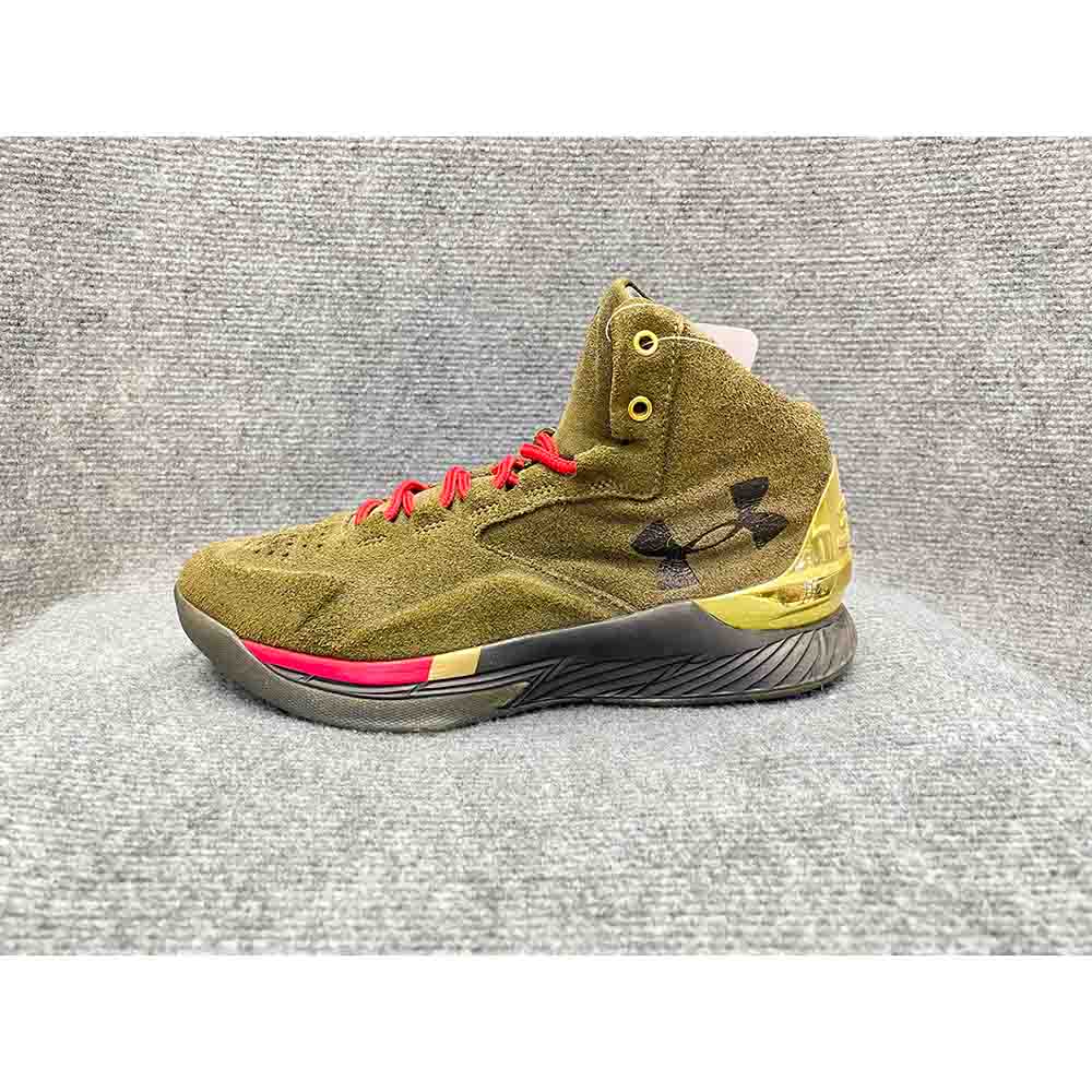 Giày bóng rổ Under Armour Curry 1 Lux chính hãng secondhand – Size 41 với độ mới 85%, thiết kế da lộn cao cấp màu xanh rêu, đế giữa Charged Cushioning mang lại sự thoải mái và hỗ trợ tối ưu cho người chơi.