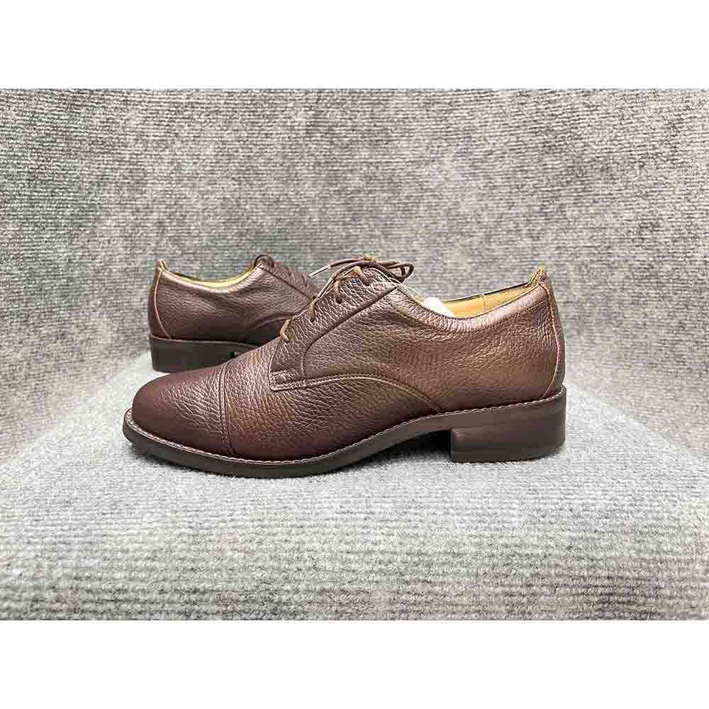 Thiết kế derby cổ điển với mũi giày captoe mang đến vẻ ngoài trang nhã và chuyên nghiệp. Thân giày được làm từ da full-grain cao cấp, đảm bảo độ bền và sự mềm mại. Lớp lót bên trong từ da thuộc kết hợp với lót giày EVA, tăng cường sự thoải mái khi sử dụng.