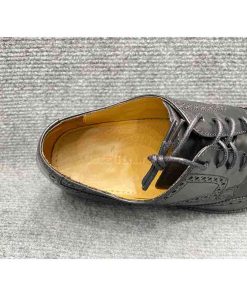 Giày derby là dòng giày tây nam với thiết kế mở phần dây buộc, mang lại sự thoải mái và dễ dàng điều chỉnh. Họa tiết brogue với các lỗ đục tinh tế không chỉ tăng tính thẩm mỹ mà còn thể hiện sự tinh xảo trong từng chi tiết. Kiểu dáng wingtip với mũi giày hình chữ “W” đặc trưng, tạo điểm nhấn nổi bật cho đôi giày.
