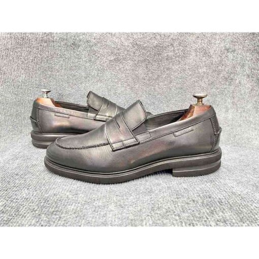 Toàn bộ thân giày được làm từ da bò full grain của Châu Âu là loại da cao cấp nhất với độ bền vượt trội, mềm mại và có khả năng chống trầy khá tốt, mang lại vẻ sang trọng và bền bỉ theo thời gian. Kiểu dáng penny loafer không cần dây buộc, dễ xỏ vào và dễ tháo ra, phù hợp cho cả phong cách casual lẫn formal.
