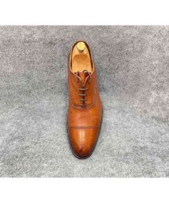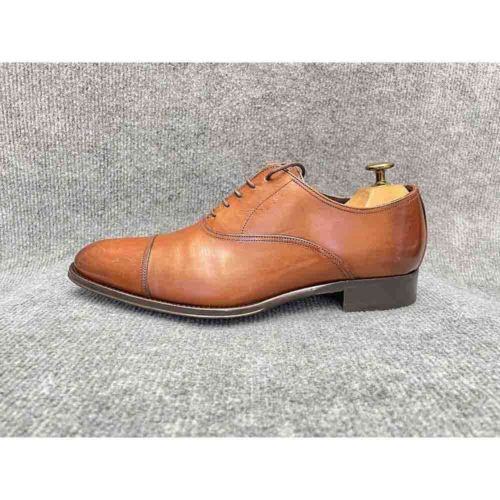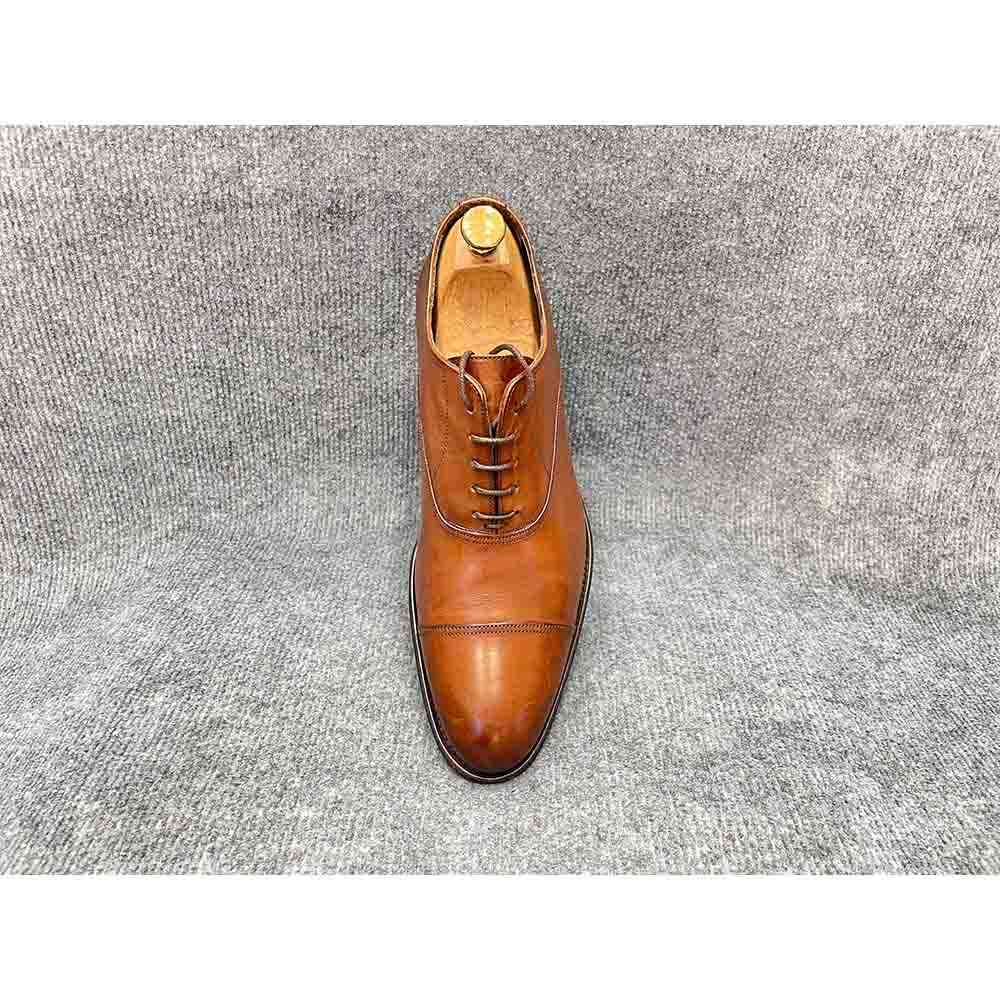 Chất liệu da bò full grain là loại da tốt nhất, bền chắc và càng dùng càng mềm mại, cho độ bóng tự nhiên theo thời gian được sửa dụng cho toàn bộ thân giày. Kiểu dáng Oxford captoe mang nét cổ điển, phù hợp với trang phục công sở hoặc các dịp trang trọng. Đế giày chế tác theo kiểu truyền thống dành cho những đôi giày cao cấp với da bò dày 4 ly.