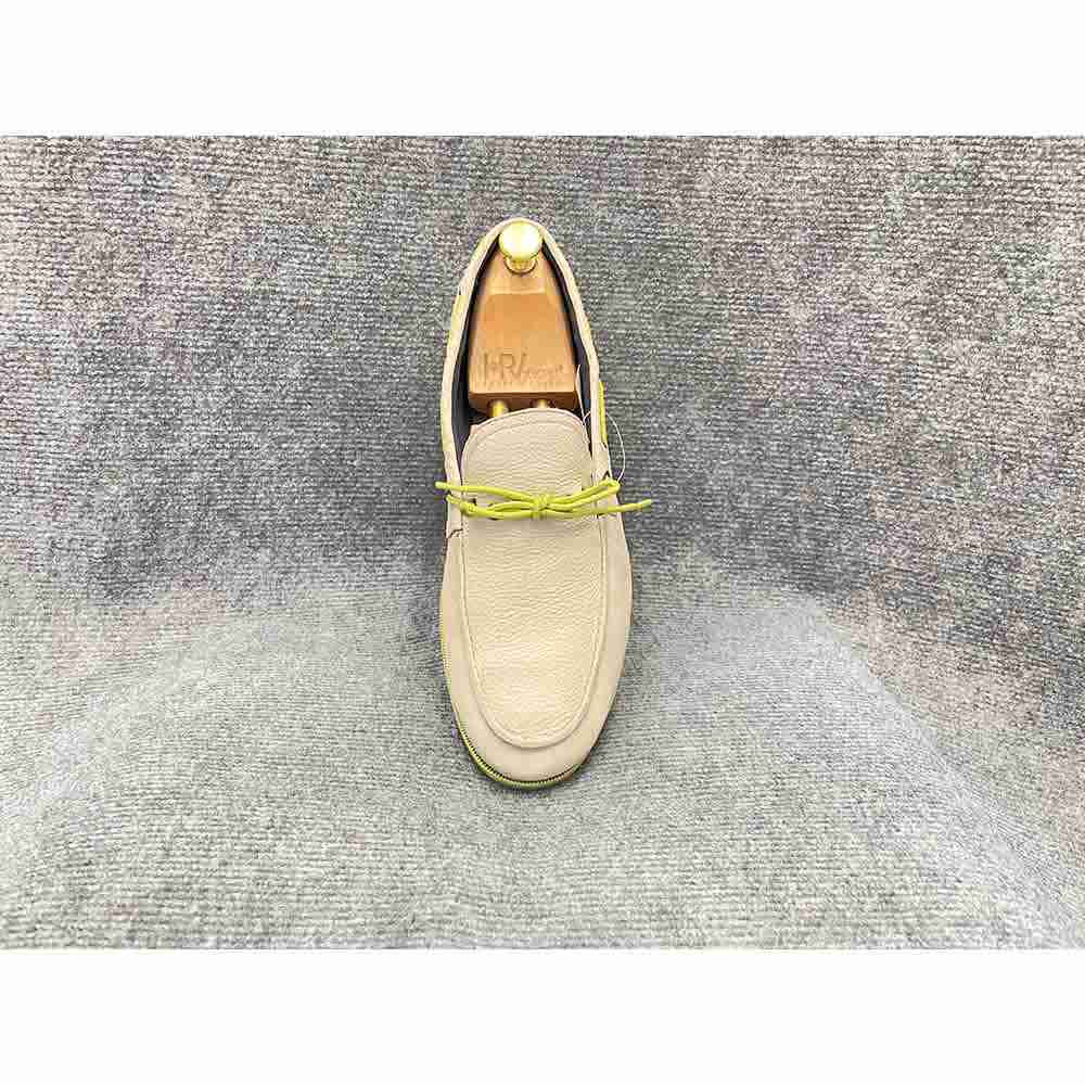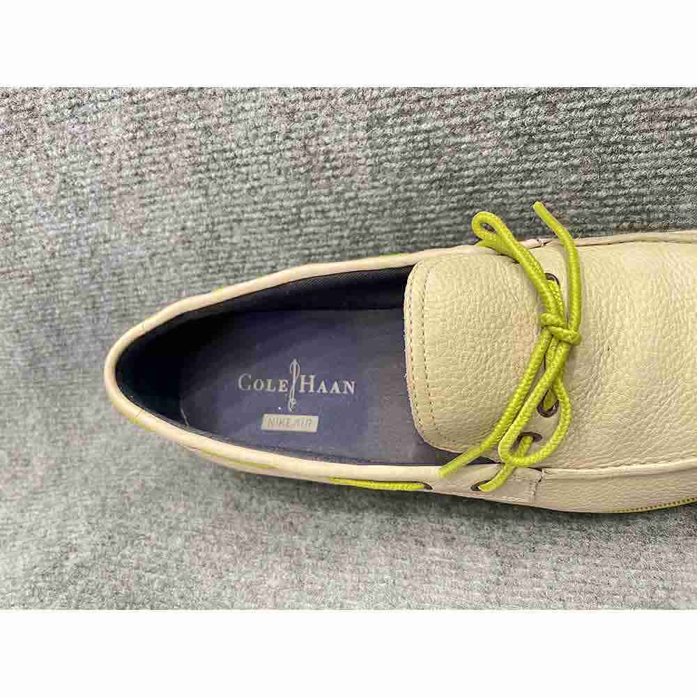 Giày slip on Cole Haan chính hãng secondhand – Size 42.5, màu be, thiết kế lấy cảm hứng từ giày boat cổ điển. Thân giày bằng da full grain bền bỉ, lót vải canvas mềm mại, đế cao su đúc tích hợp đệm khí Nike Air, độ mới 90%, nhập khẩu chính hãng từ Mỹ.