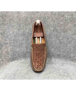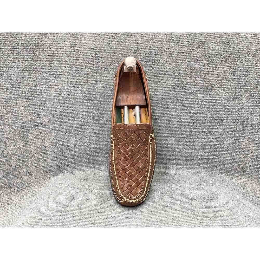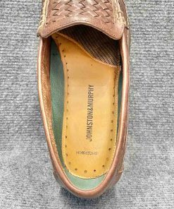 Giày slip on Johnston & Murphy chính hãng secondhand – Size 43, màu nâu, thiết kế đan da độc đáo, lót EVA bọc da cừu mềm mại, đế TPU chắc chắn. Độ mới 95%, nhập khẩu từ Mỹ, phù hợp cho phong cách lịch lãm và tiện lợi hàng ngày.
