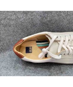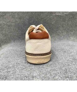 Thiết kế form lowtop giúp cổ chân linh hoạt, dễ phối với nhiều phong cách thời trang. Điểm nhấn tinh tế nằm ở phần gót da màu nâu và đường viền phân tách giữa thân và đế, tạo chiều sâu cho tổng thể.