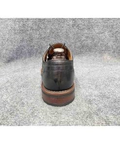 Toàn bộ thân giày được chế tác từ da bê full grain – dòng da thuộc cao cấp thường chỉ có ở các mẫu giày dress shoes bản cao cấp. Da bê có đặc tính mềm mại, dẻo dai và có bề mặt tự nhiên mịn màng, không bị xử lý nhiều, giữ lại nét tự nhiên và cũng rất bền bỉ. Thiết kế wingtip đi cùng các họa tiết brogue thủ công, giúp đôi giày vừa mang vẻ cổ điển, vừa mang nét quý phái, sang trọng.