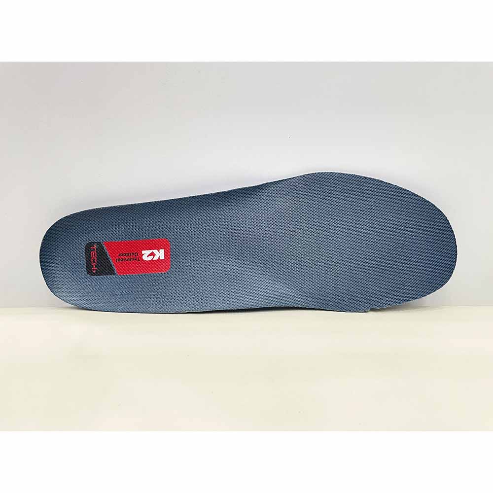 Lót sử dụng chất liệu EVA foam cao cấp – một loại vật liệu đàn hồi tốt, nhẹ và có khả năng giảm chấn hiệu quả. Với độ dày tiêu chuẩn 3mm không làm tăng size giày. Lót giày K2 Tech+ giúp cân bằng áp lực, hỗ trợ nâng đỡ vòm chân, giảm mỏi khi đi lại lâu dài. Bề mặt lót có kết cấu vải dệt chống trượt, giúp giữ ổn định bên trong giày.