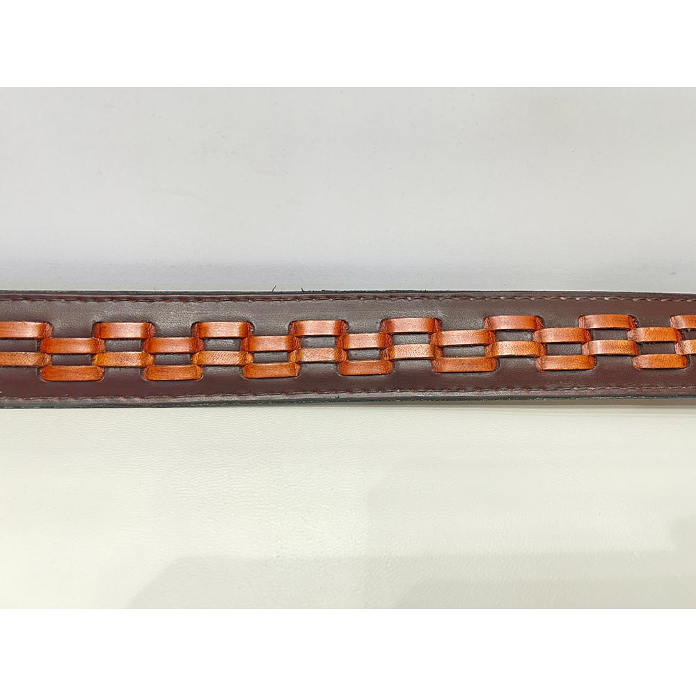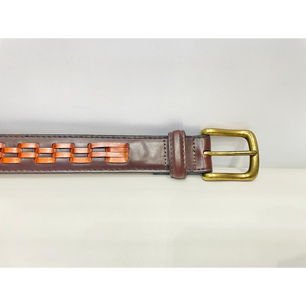 Thiết kế theo xu hướng cổ điển với họa tiết đan so le, tạo điểm nhấn độc đáo Bản rộng 3 cm phù hợp hoàn hảo với quần âu hoặc kaki. Da bò 2 tấm được ghép và may chắc chắn. Khóa đông thau nguyên khối cho cảm giác chắc chắn, độ bền cao và có nét đẹp rất phong trần.