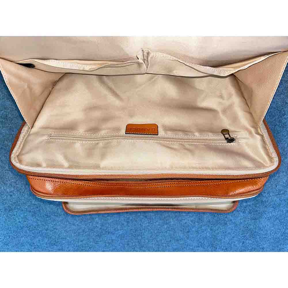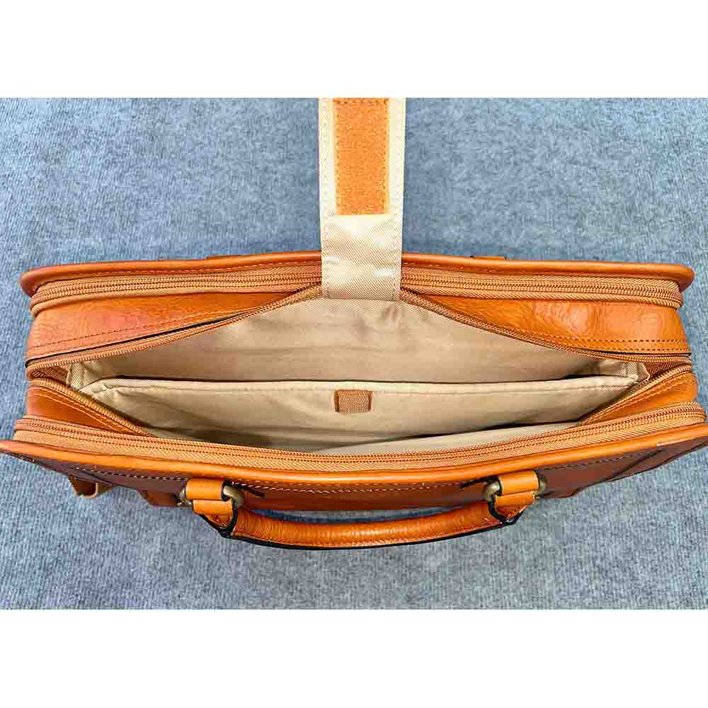Túi có 3 ngăn lớn độc lập, đủ sức chứa laptop 14 inch, hồ sơ A4, sổ tay, sạc, điện thoại, ví và nhiều vật dụng cá nhân khác. Ngoài ra còn có 1 ngăn bên ngoài kéo khóa cùng vô vàn ngăn nhỏ bên trong. Quai xách tay chắc chắn, đi kèm dây đeo vai vài dù bản rộng có đệm da giúp giảm áp lực khi đeo.