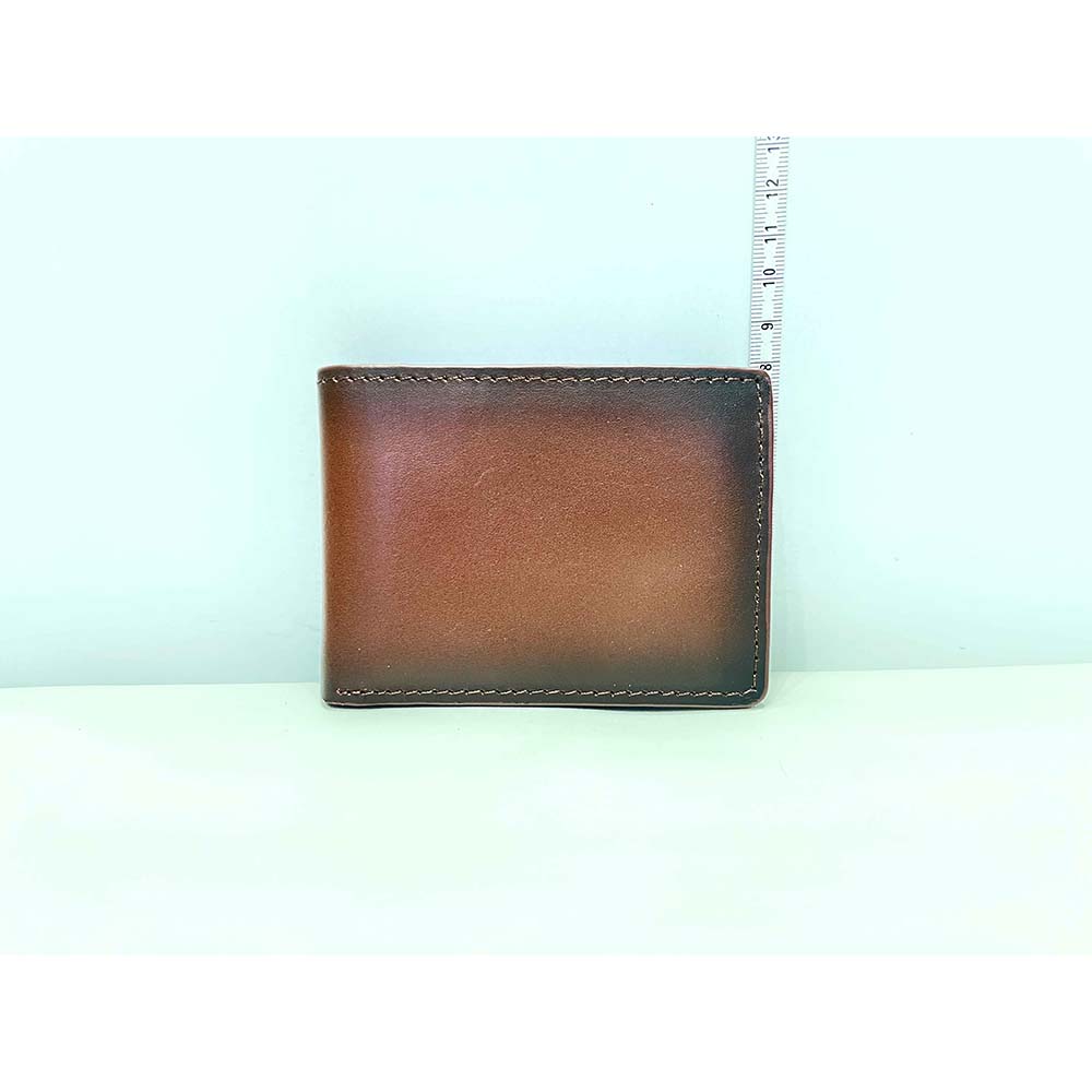 Ví được làm từ da bò full grain – loại da cao cấp nhất với độ bền vượt trội và bề mặt vân tự nhiên độc đáo. Đặc biệt, hiệu ứng patina được tạo ra qua quá trình xử lý thủ công, mang đến vẻ ngoài cổ điển và sang trọng. Thiết kế tối giản nhưng tinh tế, phù hợp với nhiều phong cách thời trang khác nhau.